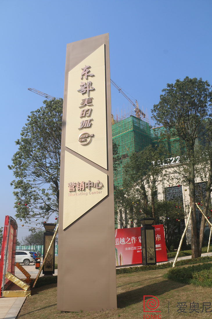 東部·美的城項目精神堡壘由愛奧尼標識設計公司精心制作,不管是設計風格還是精神堡壘上面的內容都賦予了豐富的文化內涵,集中體現了整個項目的精神,是一種很特別的獨立廣告代言形式,使精神堡壘在整個標識系統中起著不可替代的作用。